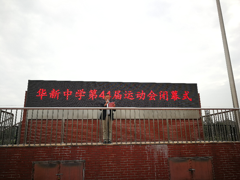 随着比赛的结束,运动会也即将落下帷幕。运动会最后一项,荣誉和丰收的环节——颁奖典礼荣耀展开。在校长唐林老师的致辞下,颁奖典礼结束,华新中学第四十四届运动会圆满落幕。