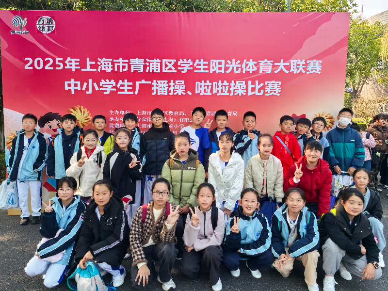 11 月 22 日下午,2025 年上海市青浦区学生阳光体育大联赛中小学生广播操、啦啦操竞赛在豫英小学(青湖路 459 号)火热进行。华新中学代表队在领队冯佳倩的统筹带领下,由徐天乐教练指导广播操项目、朱青亭教练负责啦啦操项目,全力征战初中组赛事,最终凭借出色表现斩获广播操三等奖与啦啦操二等奖,用活力与实力展现初中生的青春风采。