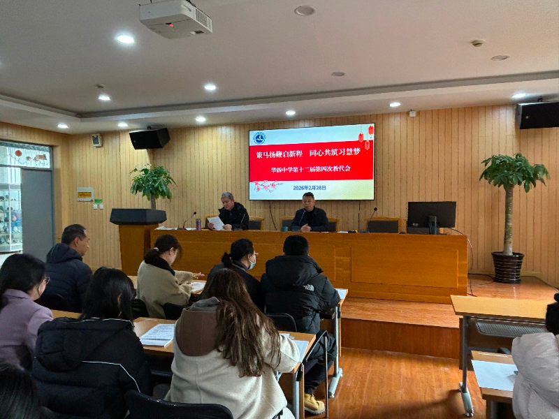 春启新章,奋进正当时。为进一步凝聚共识、明晰方向、压实责任,2026年2月28日上午,华新中学第十二届教代会第4次会议在学校1号楼4楼会议室隆重召开。本次会议由工会主席吴海云老师主持,全体教代会代表齐聚一堂,共绘育人蓝图。